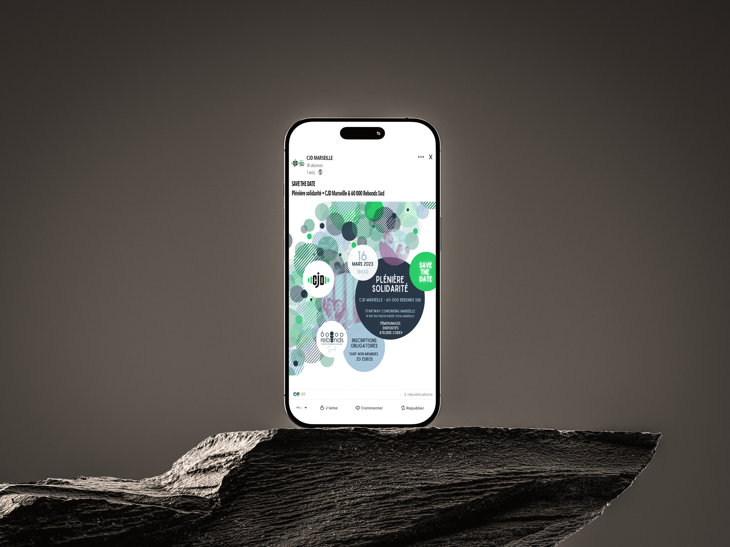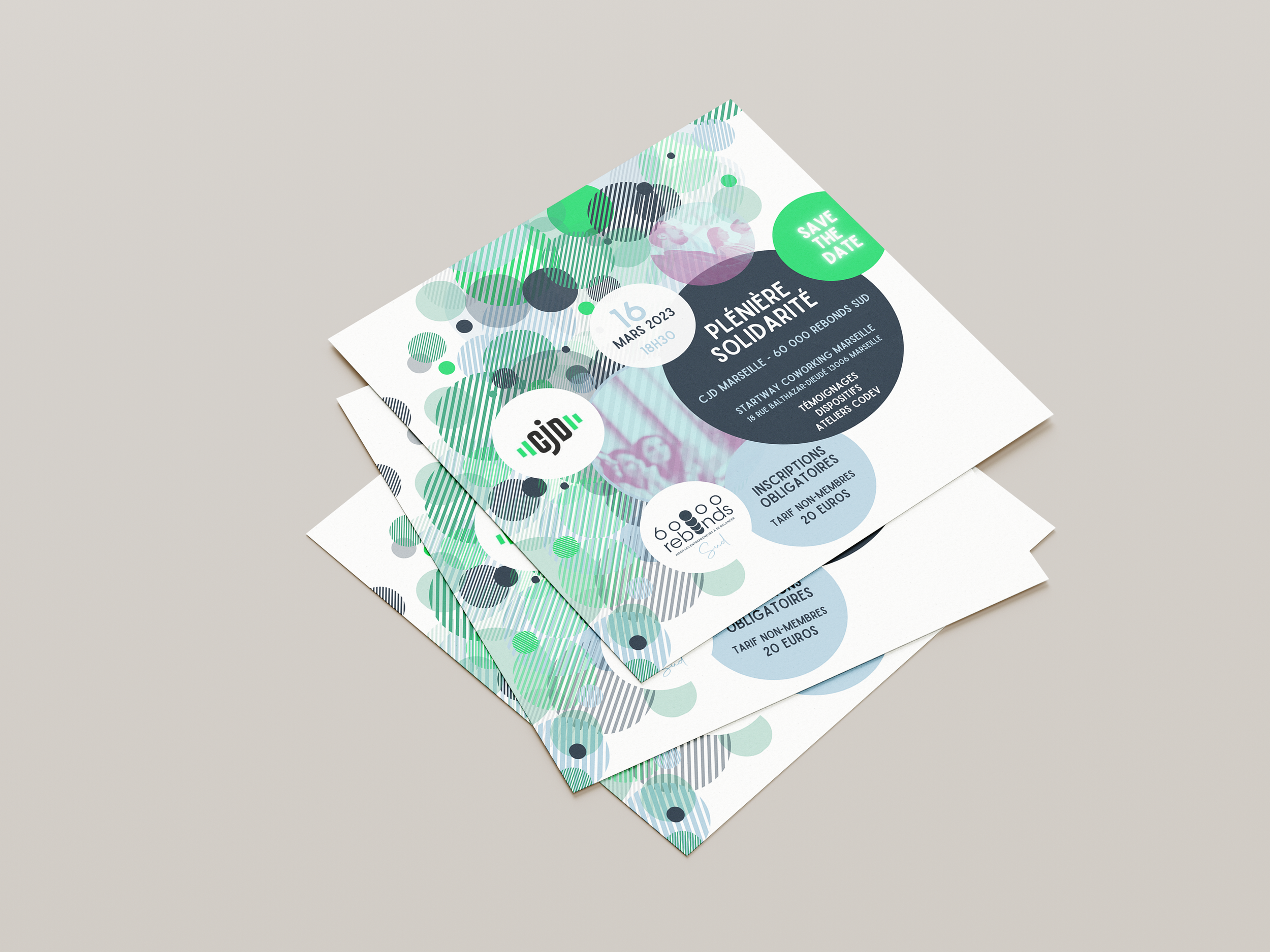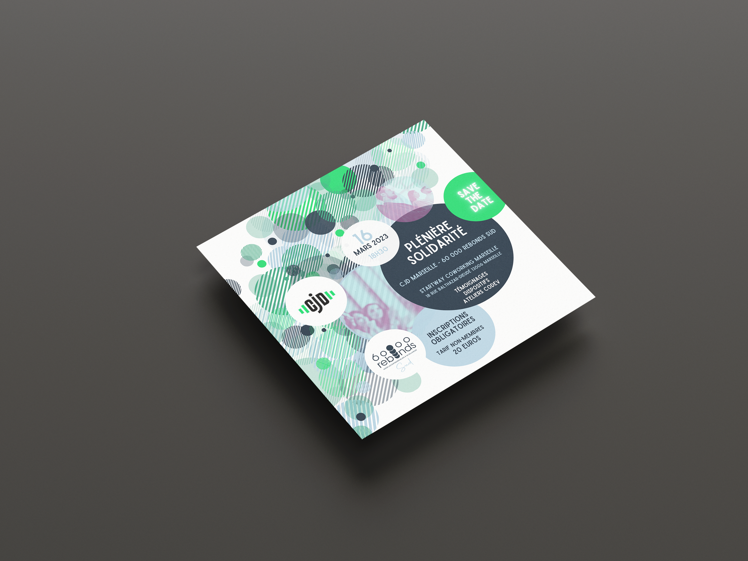 Nous avons conçu une invitation pour promouvoir l’évènement co-organisé par le CJD Marseille et 60 000 Rebonds Sud.