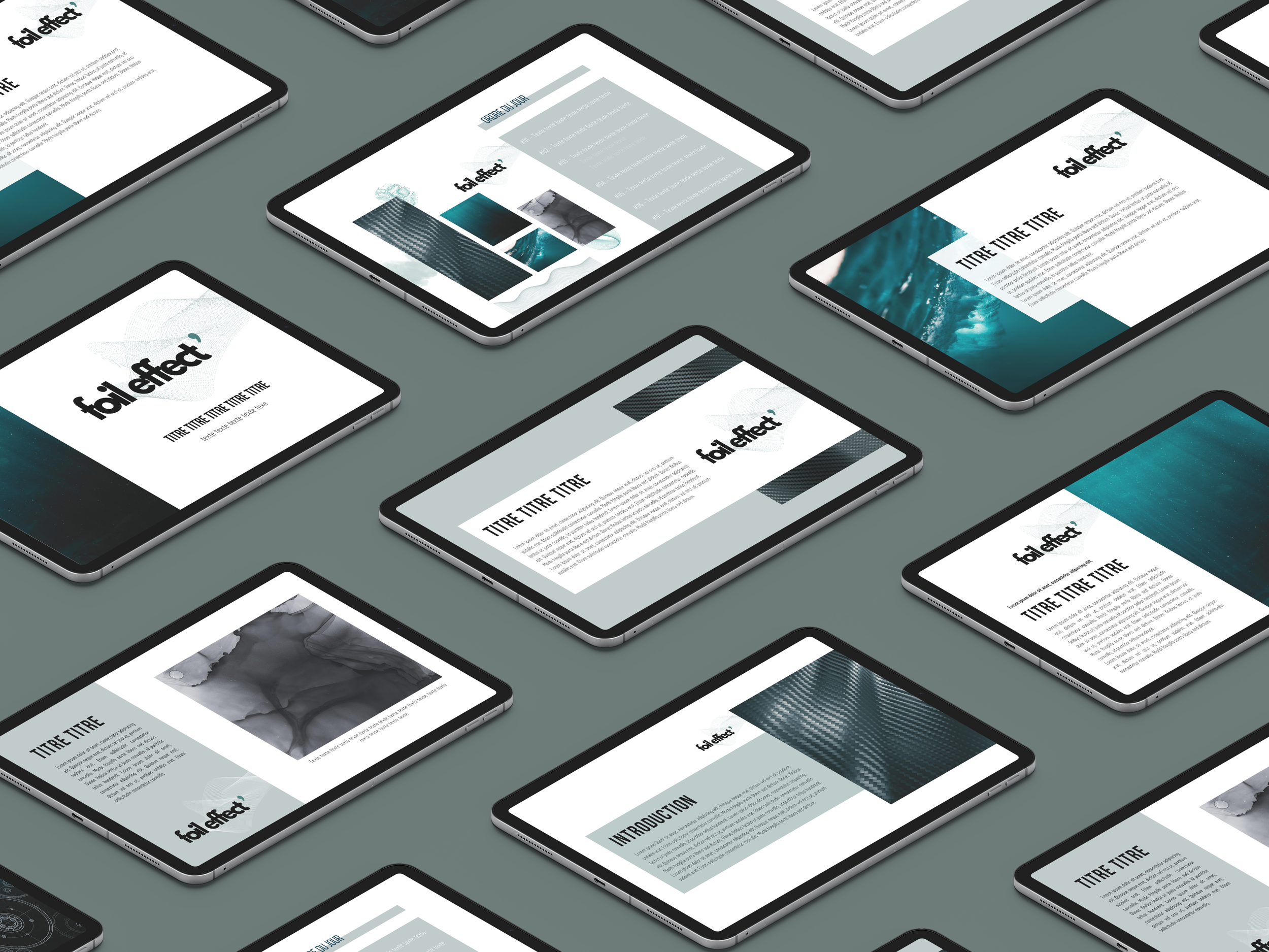Nous avons développé des supports qui respectent l’image de marque de Foil Effect’ tout en mettant en avant des designs soignés et des contenus percutants :